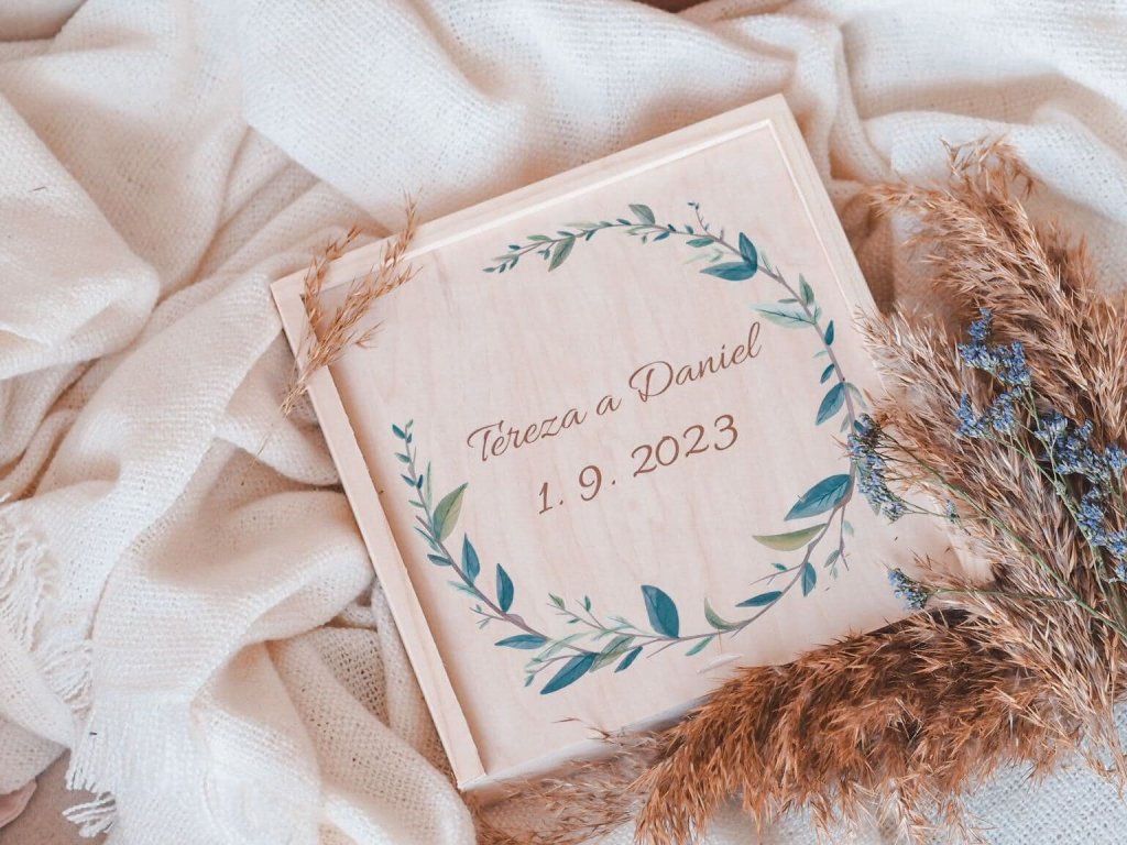 Drevená krabička na svadobné fotografie