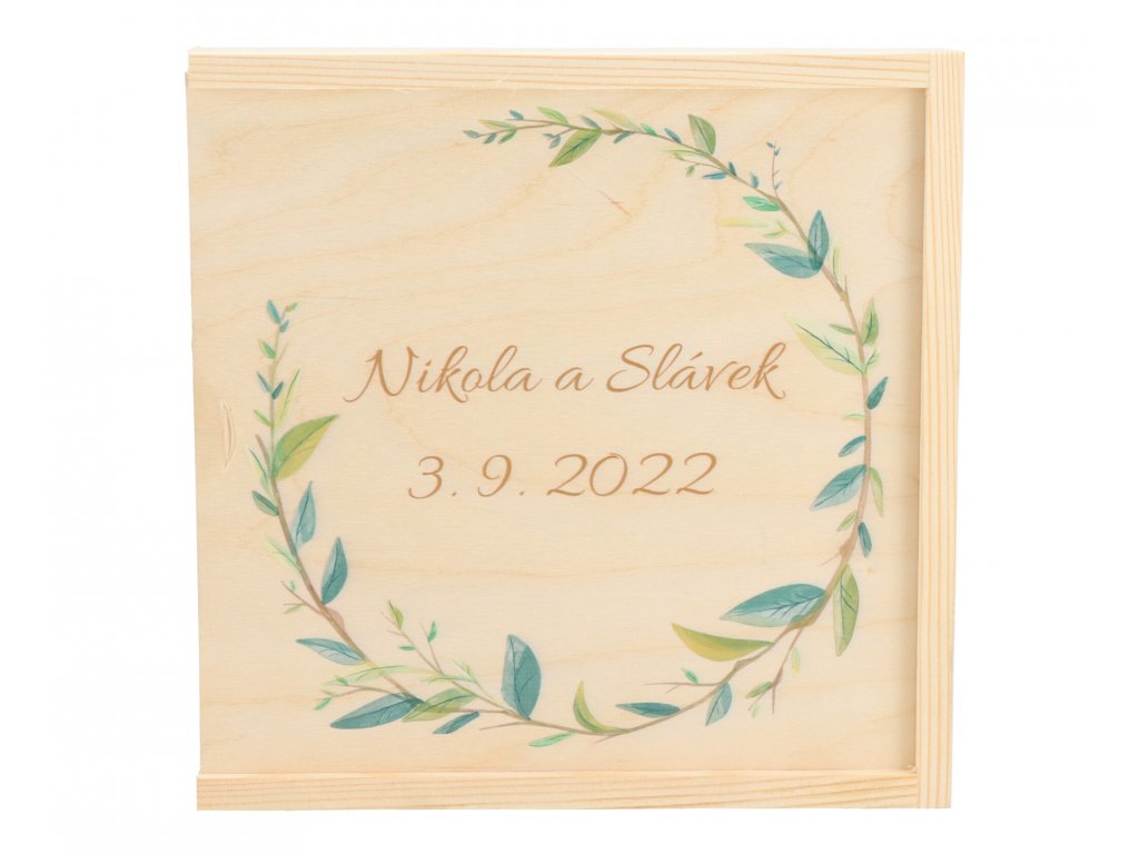 Potešte novomanželov krabičkou na fotky s decentným motívom ratolestí. Svoje spomienky tak budú mať na jednom mieste.