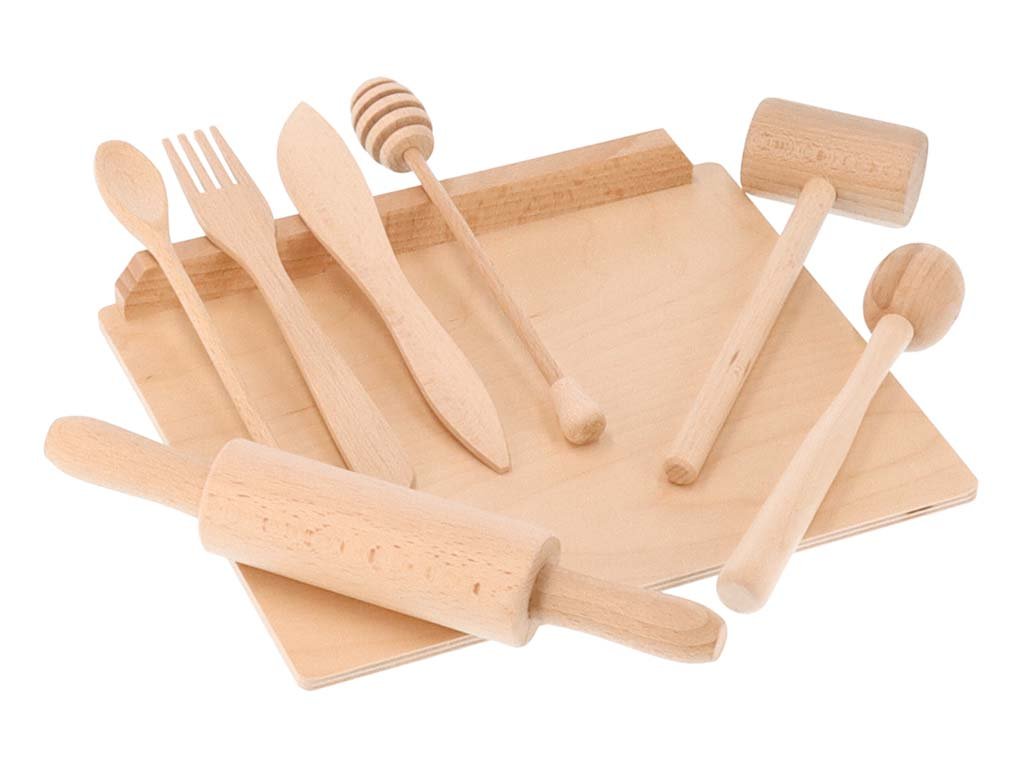 Súprava pre deti je vyrobená z opracovaného bukového dreva. Veľkosť je prispôsobená pre ruky vašich malých pomocníkov.