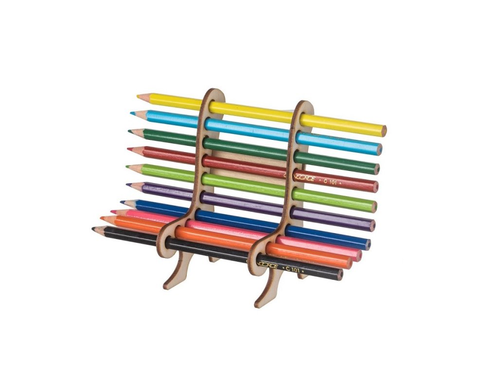 Vyrobený z 3 mm brezovej preglejky na 10 ks farbičiek.