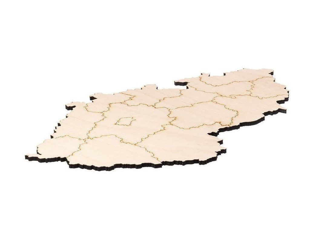 Mapa je vyrezaná z preglejky 0,8 mm laserom s vysokou precíznosťou a dôrazom na detail.