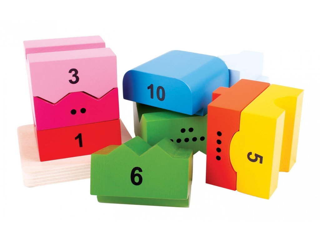 Drevená motorická hračka podporuje rozvoj detí, ich trpezlivosť a sústredenie. Jednotlivé dieliky sa nasadzujú na seba tak, aby vytvorili vežu.