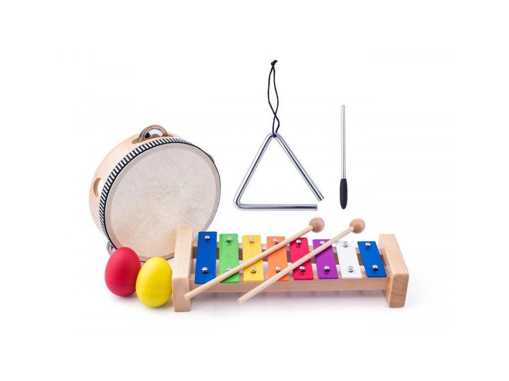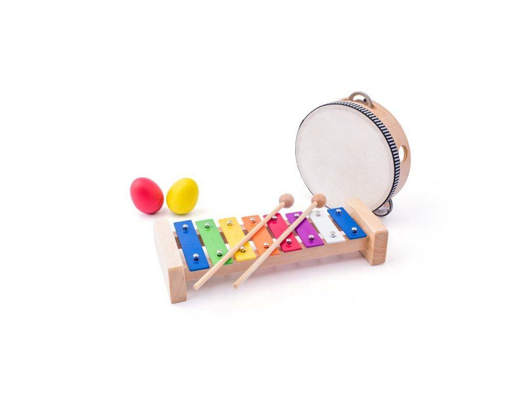 Originálna súprava nástrojov vhodných pre deti a začínajúcich muzikantov. Balenie obsahuje xylofón, tamburínu/bubienok, triangel a 2 maracas vajíčka.