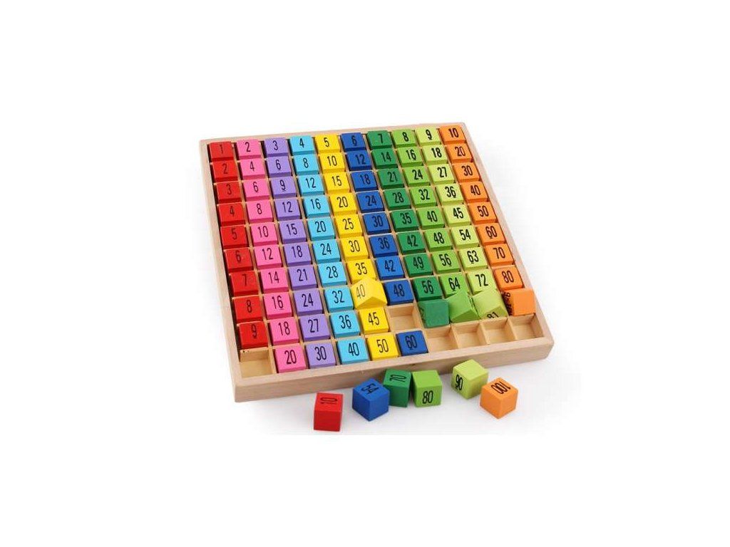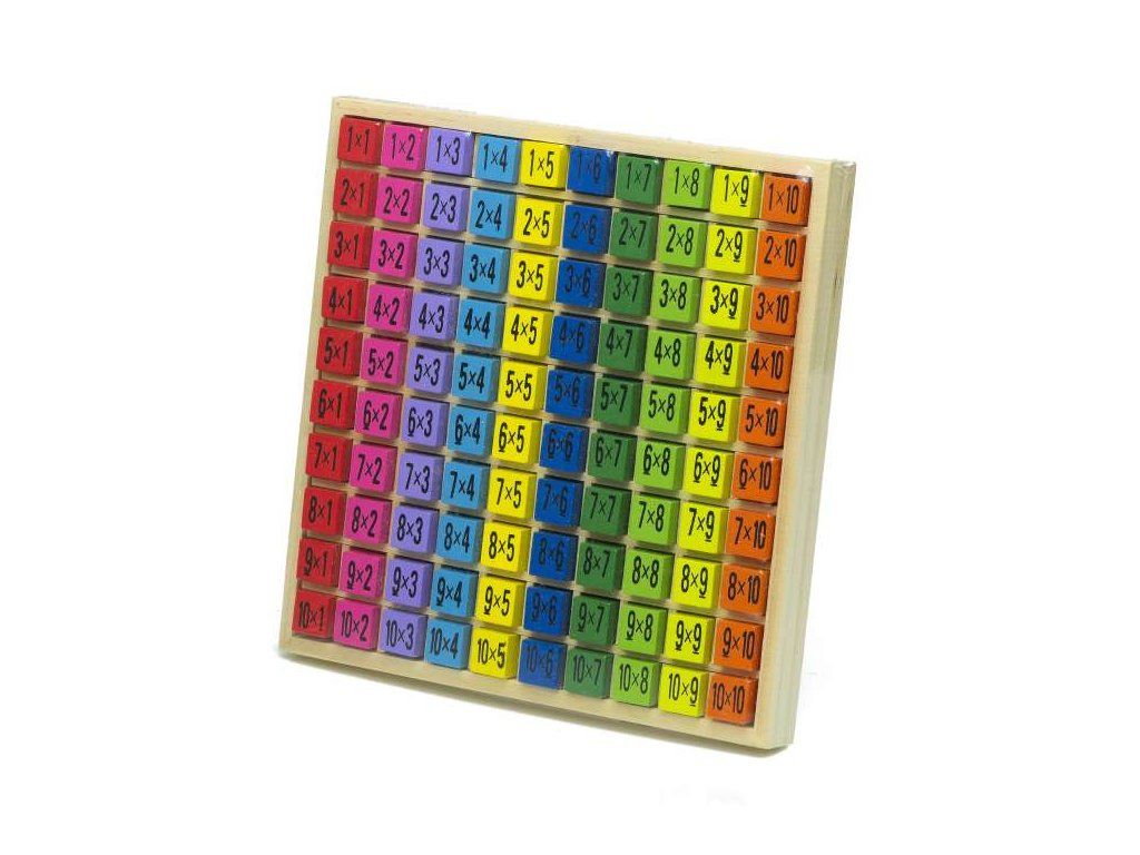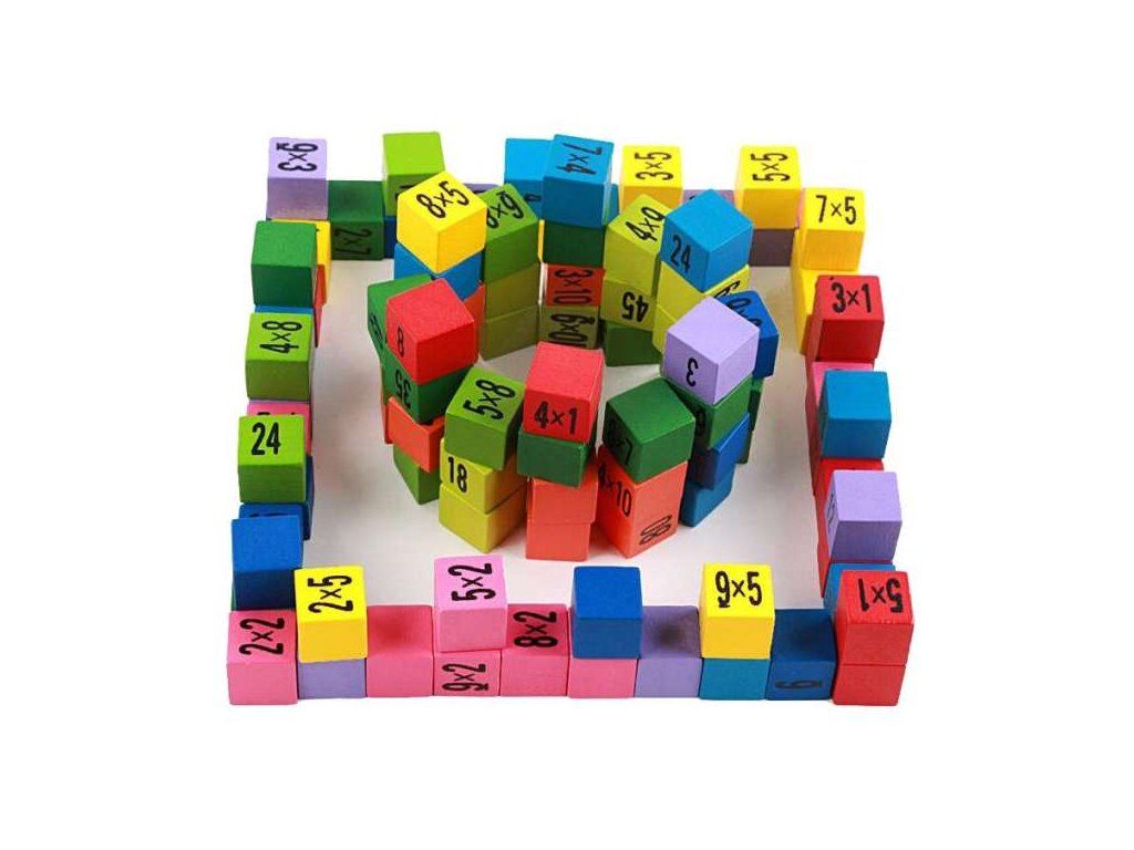 Vzdelávacia sada obsahuje 100 ks rôznofarebných kociek. Na jednej strane kocky je operácia násobenia, zatiaľ čo na druhej strane je skrytý správny výsledok.