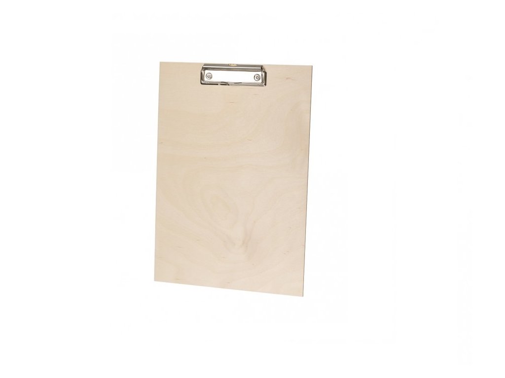Podložka je vyrobená z brezového dreva a je vhodná na papiere do veľkosti A5. Brezová preglejka má hrúbku 3 mm a je vybavená silným klipom.