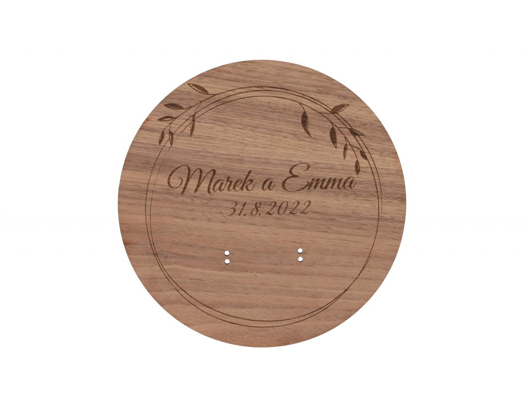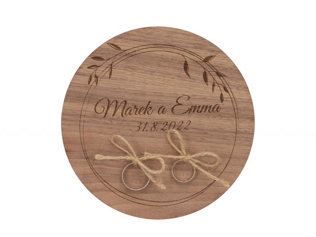 Drevená podložka na snubné prstene orech - jemný veniec