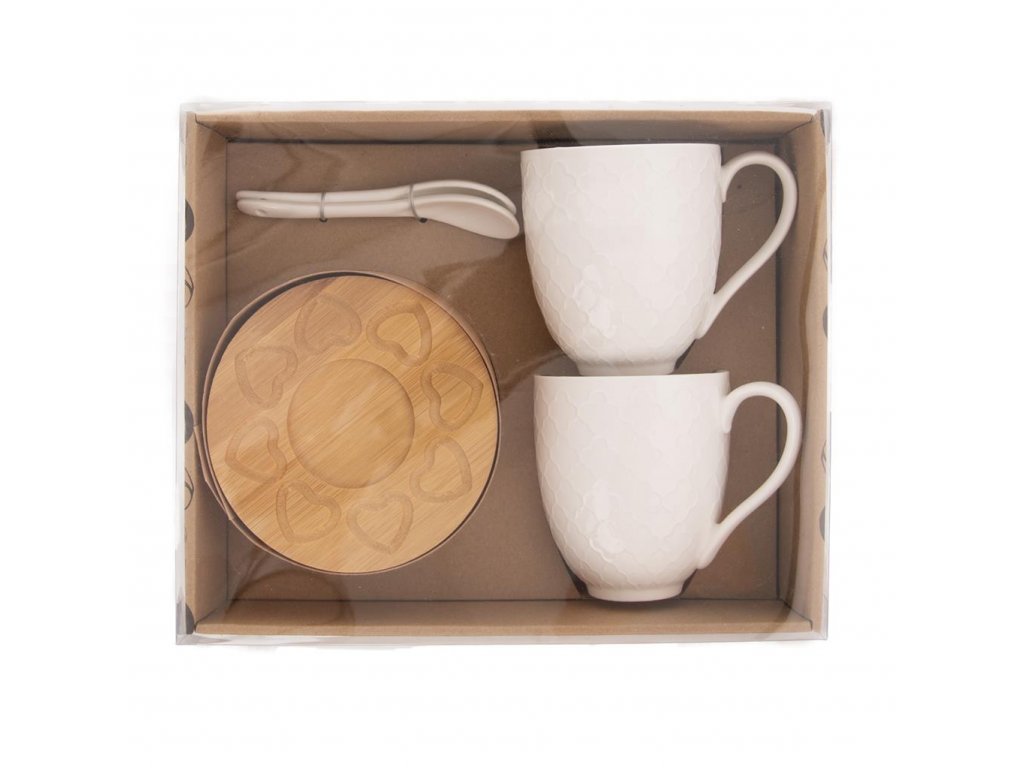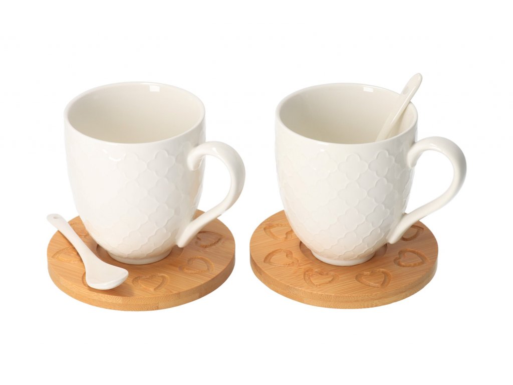 Balenie obsahuje 2 komplety (podložka pod pohár, hrnček, lyžička).