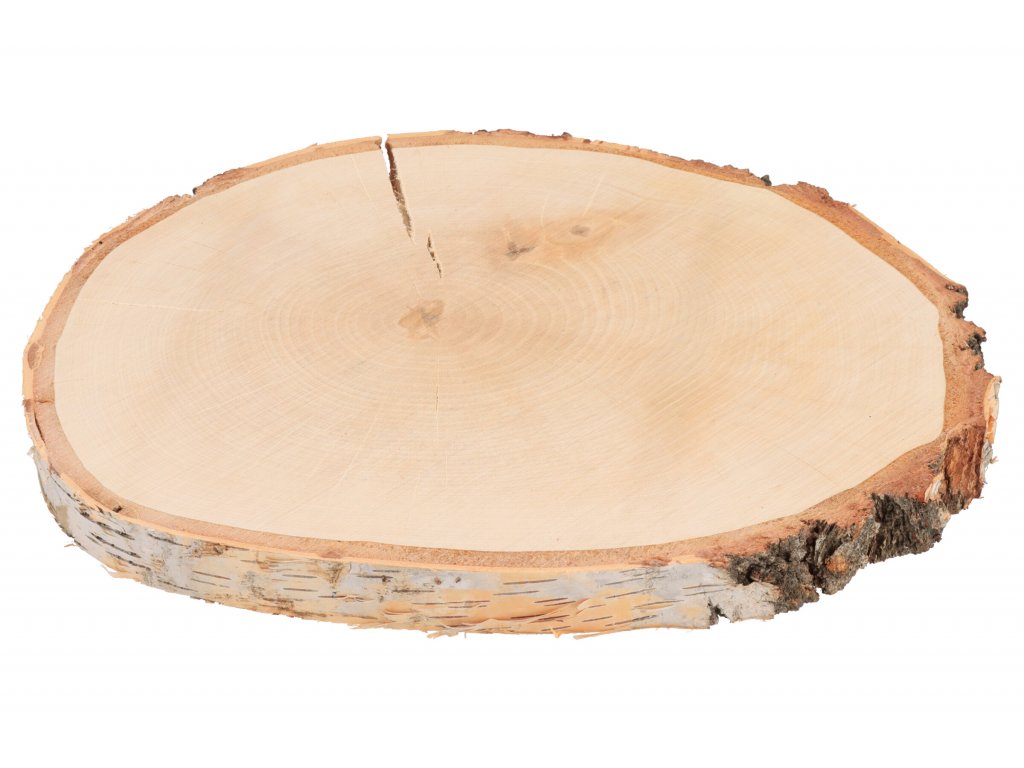 Drevená podložka z kmeňa brezy s prírodnou kôrou je krásnou dekoráciou, ktorá doplní každý svadobný stôl a v období Vianoc môže poslúžiť ako základ na adventný veniec.