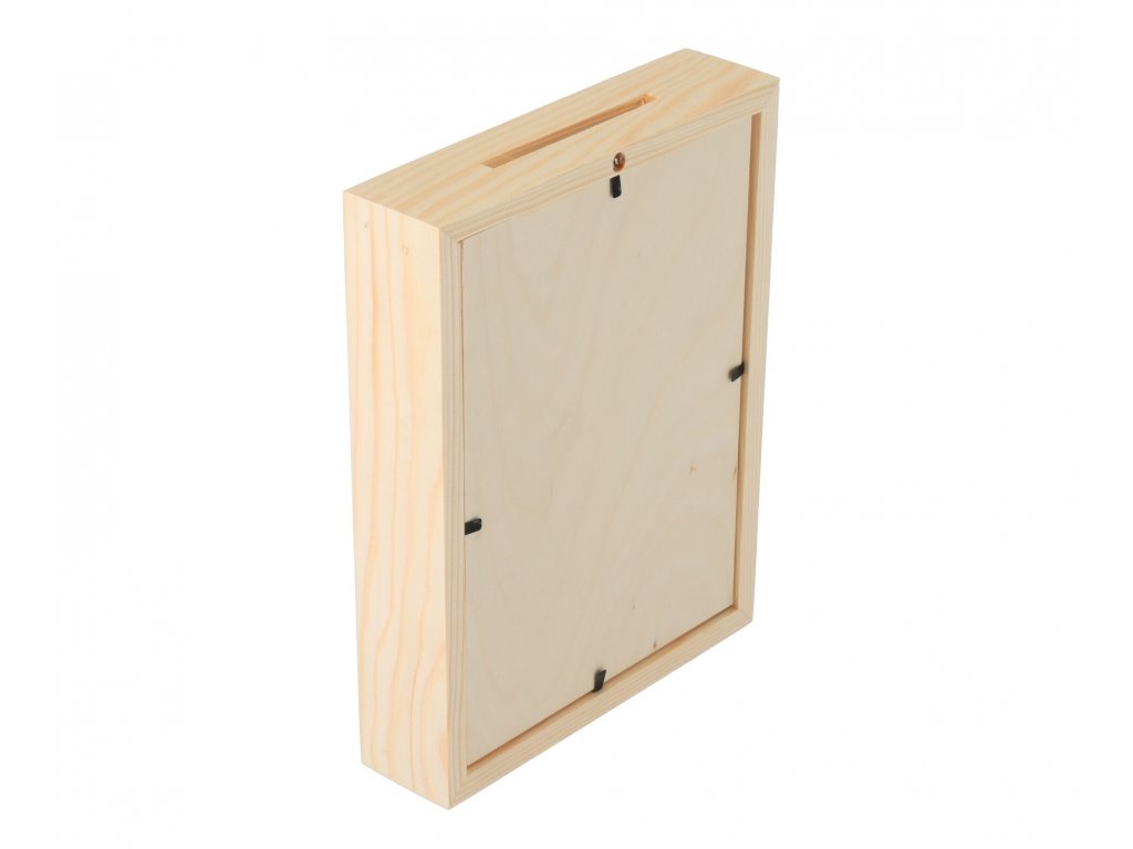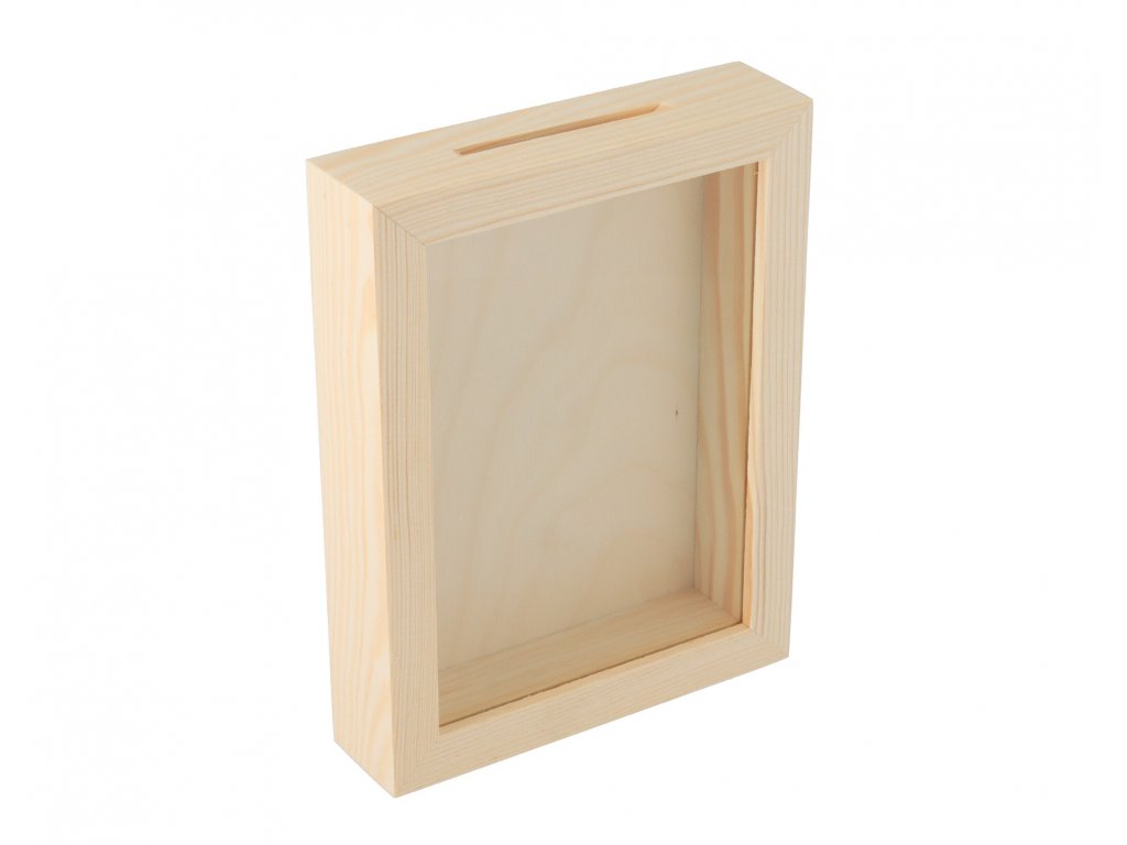 Odkladajte si peniaze originálnym spôsobom. Drevená pokladnička sa stane praktickou dekoráciou domácnosti a vďaka presklenému rámčeku môžete každý deň sledovať, ako sa postupne napĺňa.