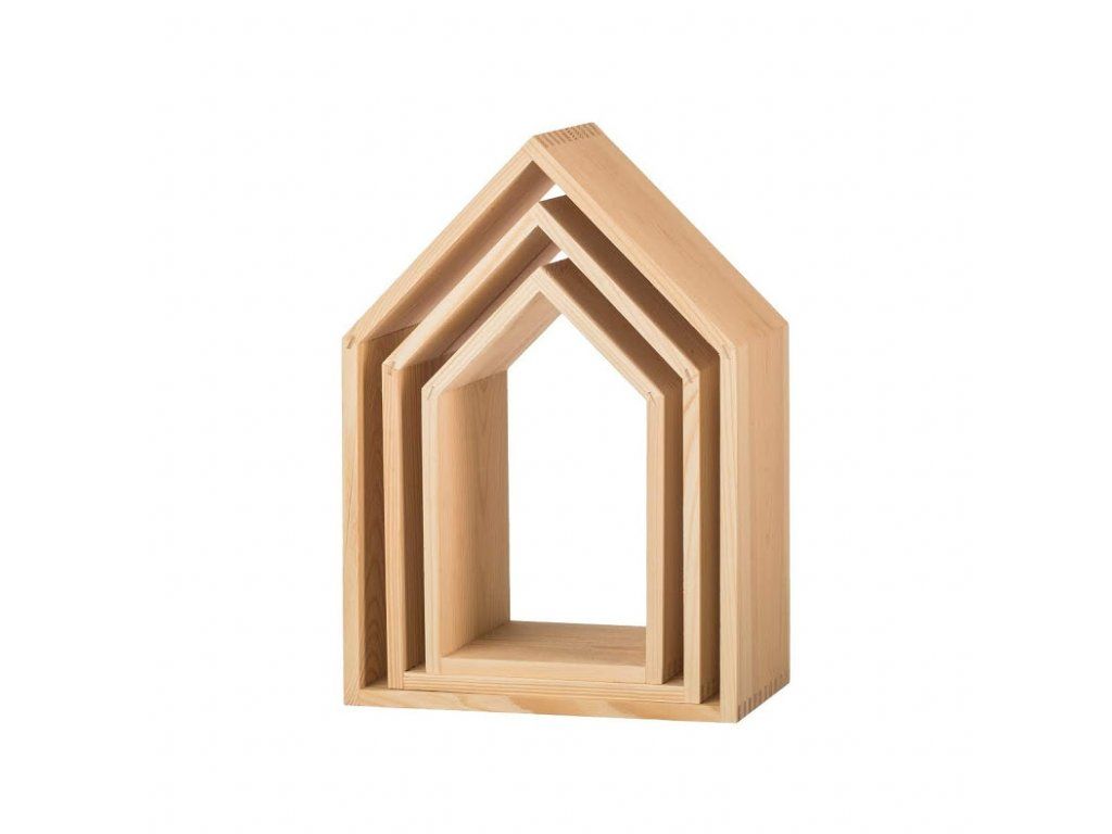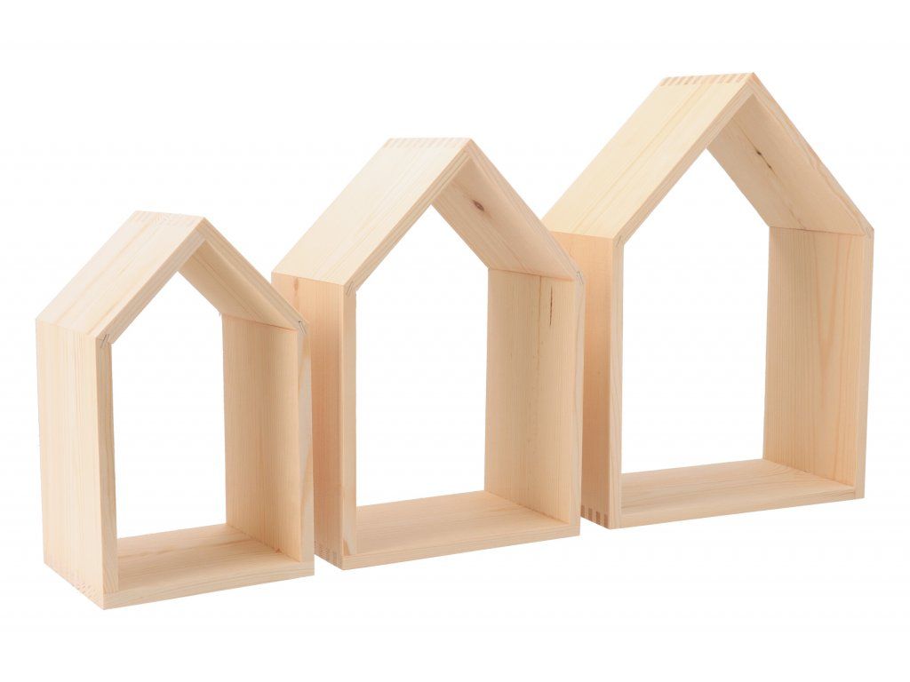 Drevená polička domček otvorená - súprava 3 ks