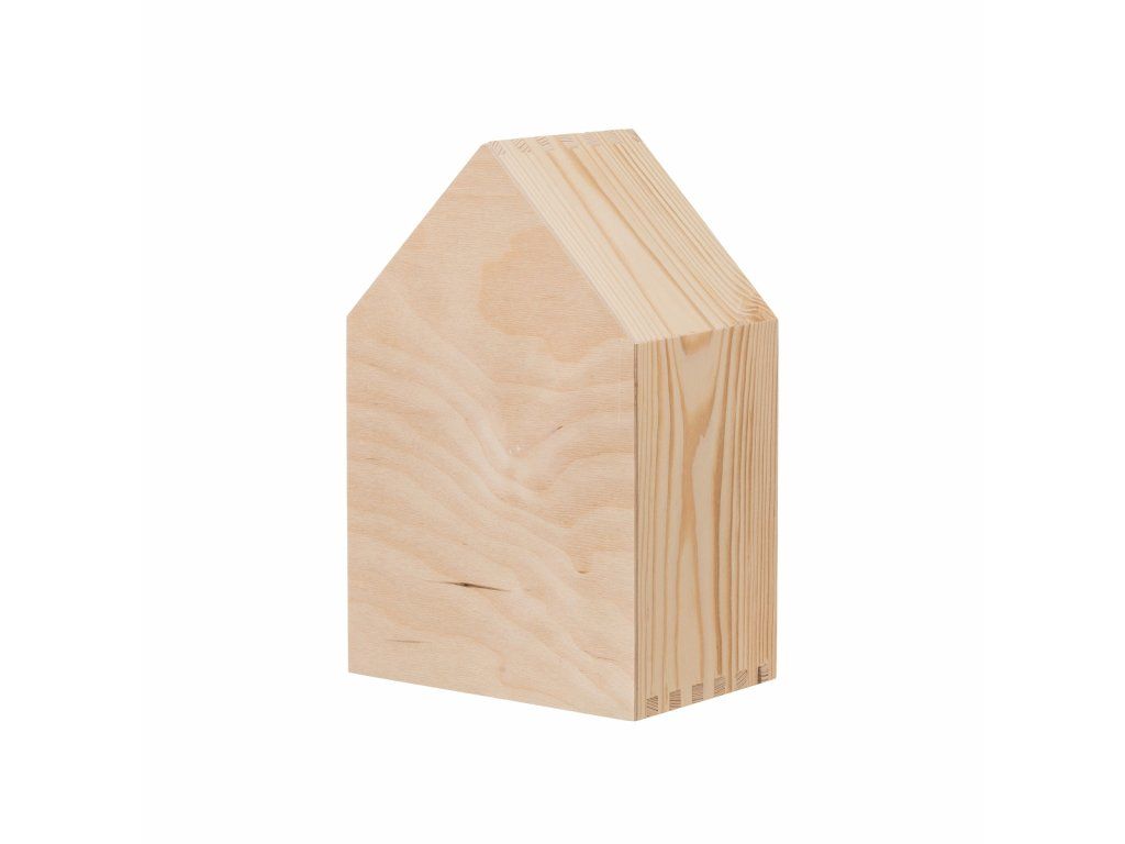 Domčeková polička ozvláštni každú detskú izbičku. Domček je z čistého, neošetreného dreva, preto popustite uzdu fantázii a ozdobte si ho podľa svojich predstáv. Ak poličku chcete zavesiť na stenu, bude treba do neho vyvŕtať dierku alebo na naň pripevniť háčik. Ale rovnakú funkciu bude plniť aj pokiaľ ho postavíte na policu alebo komodu.