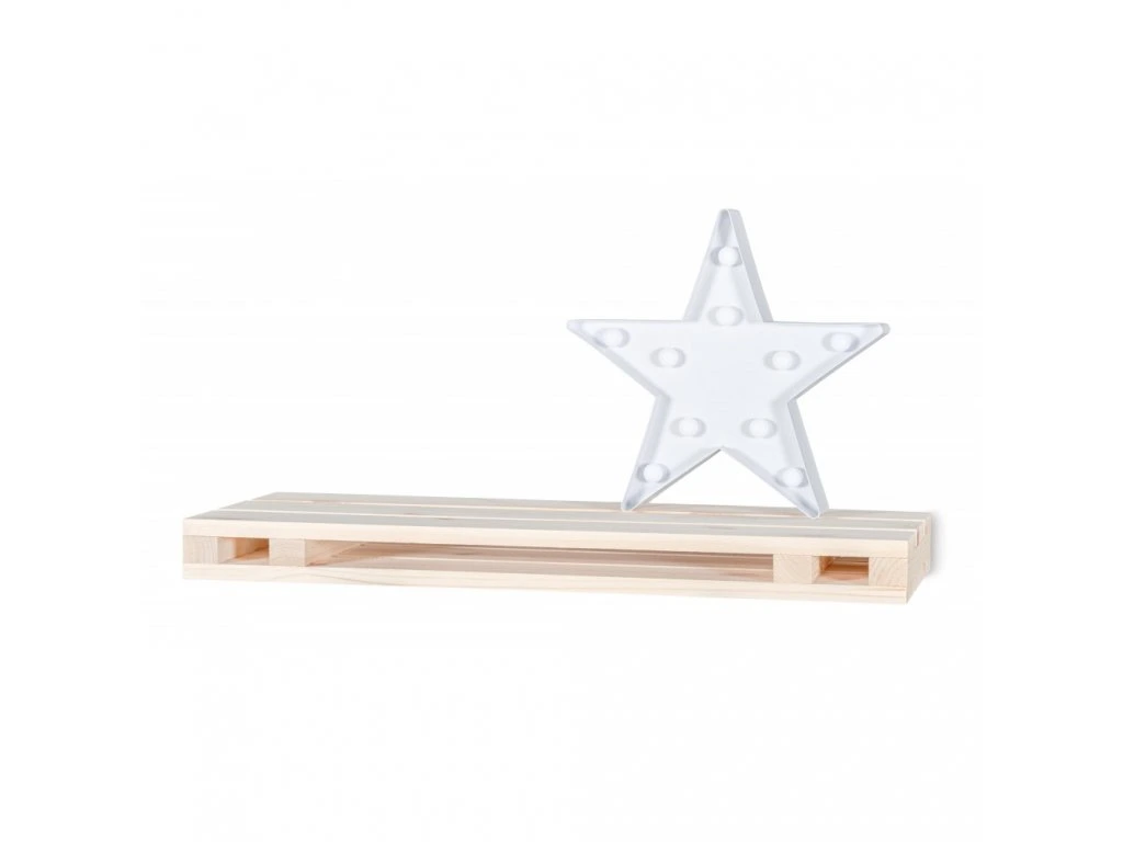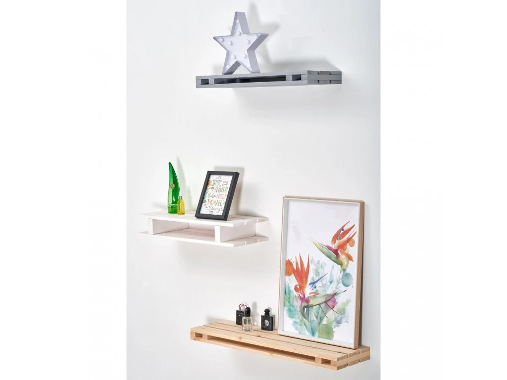 Dekoratívna závesná polica v tvare palety. Moderný design jej dodá ten správny šmrnc narozdiel od obyčajnej poličky. Polica je priestorná a môžete na ňu umiestniť napríklad fotorámčeky, sviečky, kvetiny a mnoho ďalších dekorácii.