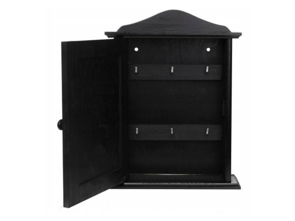 Drevená skrinka v elegantnej čiernej farbe je praktický doplnok vašej predsiene. Skoncujte s neustálym hľadaním kľúčov po vreckách a majte ich vždy prehľadne na jednom mieste.