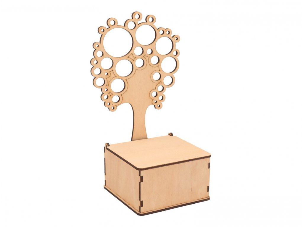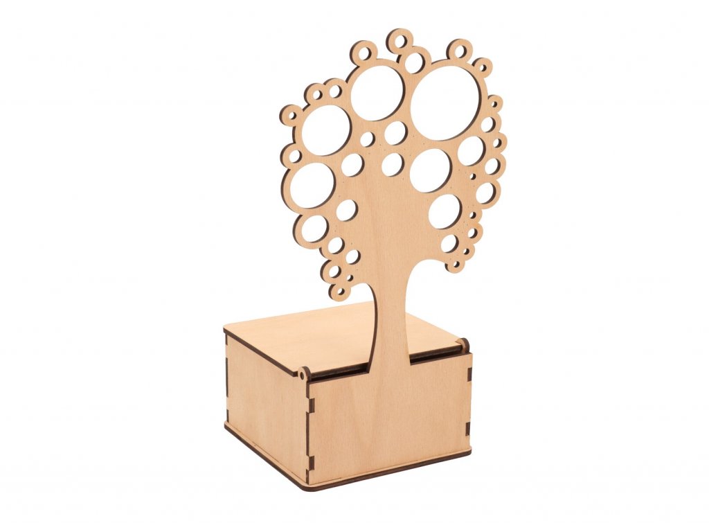 Šperkovnica je vyrobená z bukovej preglejky a nie je nijako ošetrená, čo ocenia predovšetkým kreatívne ženy, pretože si vďaka tomu môžu šperkovnicu pomalovať alebo dotvoriť metódou decoupage.