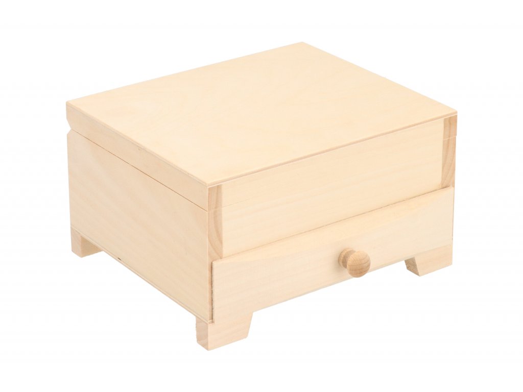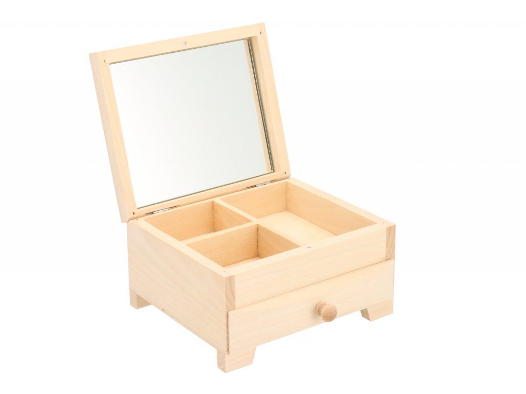 Šperkovnica je z borovicového dreva a nie je nijako ošetrená, čo ocenia predovšetkým kreatívne ženy, pretože si vďaka tomu môžu šperkovnicu pomaľovať alebo dotvoriť metódou decoupage.