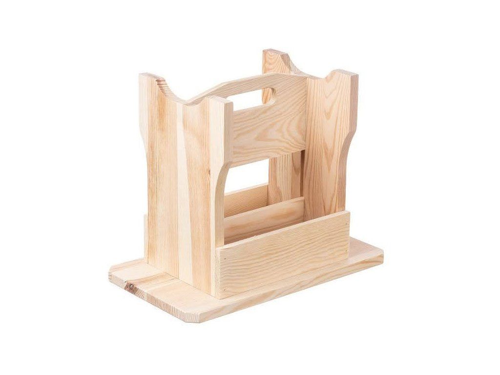 Predstavujeme pohodlnú a šikovnú stoličku z borovicového dreva, ktorú je možné použiť ako nosič na fľaše alebo iné predmety. Ideálne na dovolenku, kempovanie alebo letné výlety. Šikovná rukoväť vám uľahčí prenášanie najnutnejších vecí a v prípade potreby môžete nosič rýchlo zmeniť na miesto na sedenie a odpočinok.