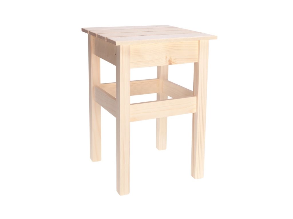 Krásna stolička na štyroch nôžkach je vyrobená z masívneho borovicového dreva. Hodí sa do každej domácnosti, kde nájde svoje uplatnenie ako stolička navyše, keď príde nečakaná návšteva, stupienok, ktorý uľahčí prístup do vrchných poličiek, alebo ako stojan na kvety.