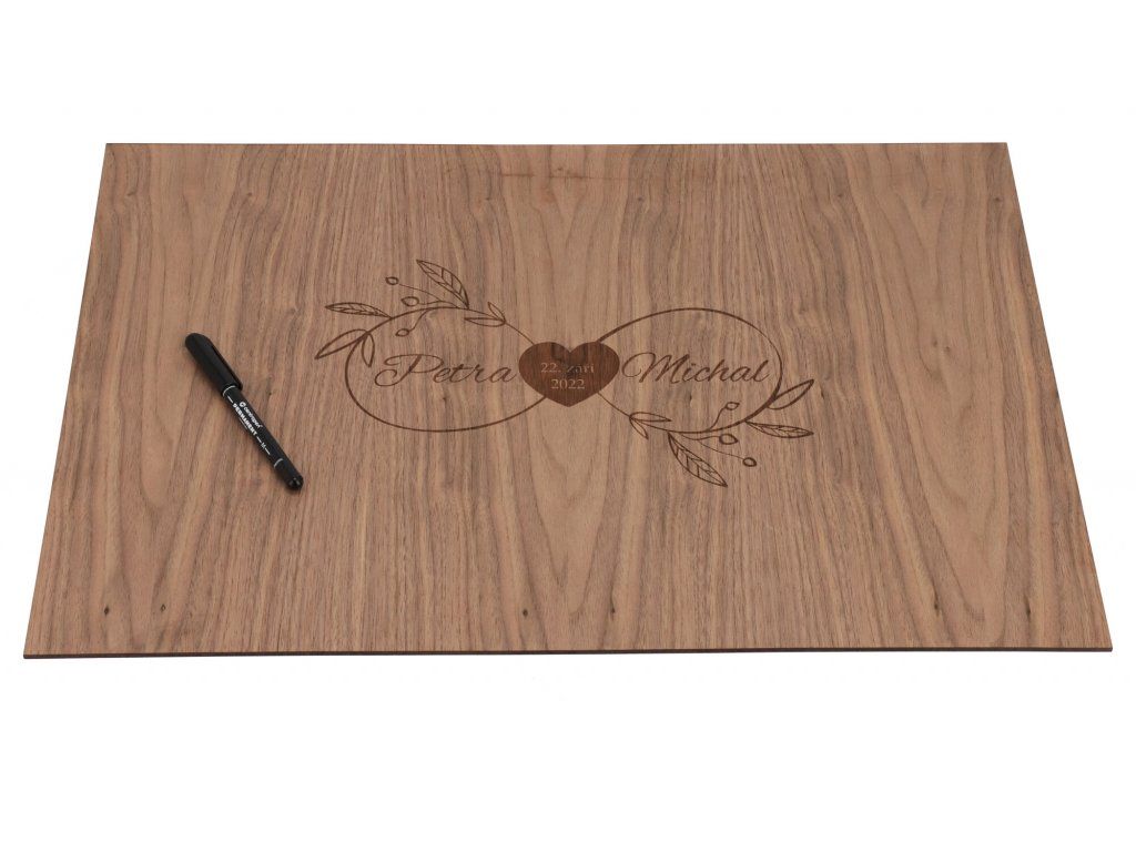 Drevená svadobná ceduľa na podpisy orech - nekonečno