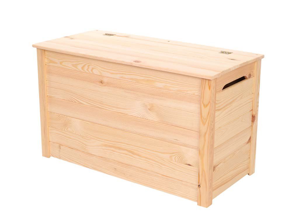 Veľká drevená truhla ATMOWOOD je dokonalý úložný priestor pre detské hračky, oblečenie, posteľnú bielizeň alebo sezónne dekorácie. Masívne borovicové drevo sa bude v interiéri krásne vynímať.