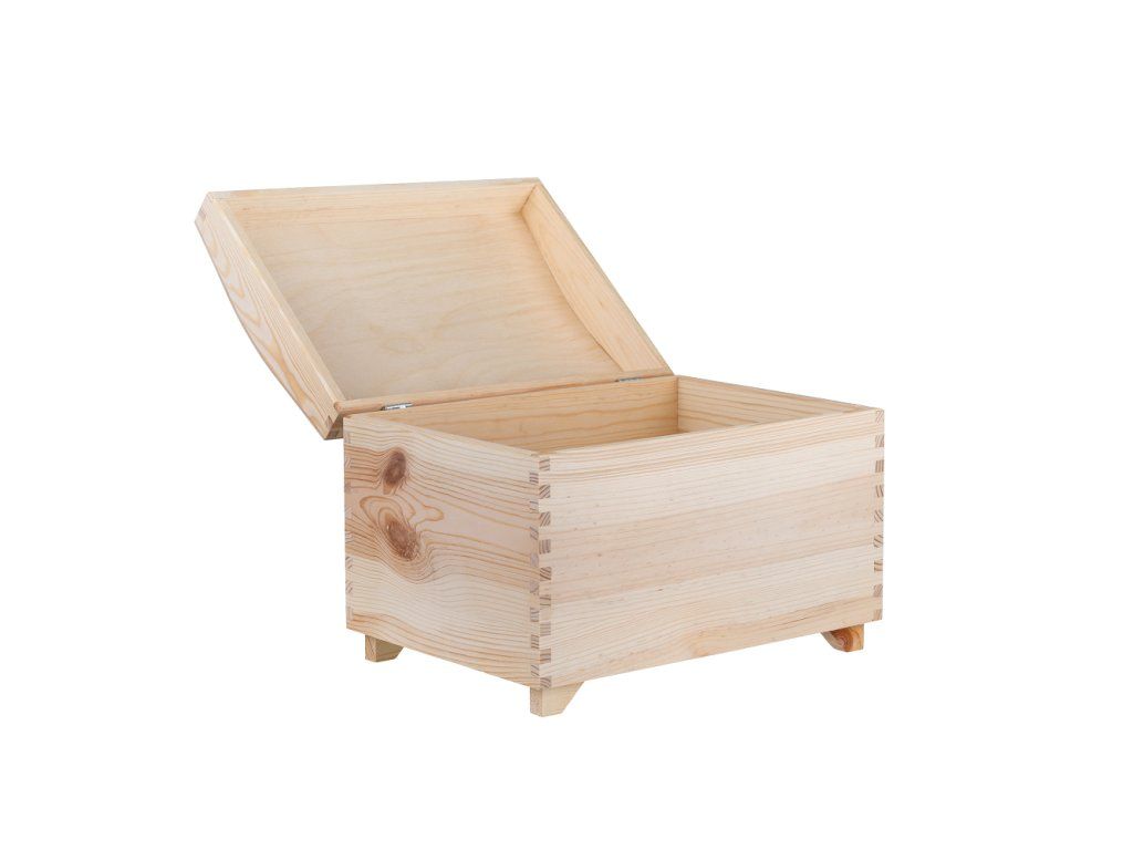 Truhla je vyrobená z borovicového dreva a nie je nijako ošetrená. Pokiaľ by ste si priali vytvoriť skvost, ktorý sa stane žiariacim drahokamom vášho domova, môžete si urobiť kreatívnu chvíľku a truhlu natrieť alebo inak ozdobiť.