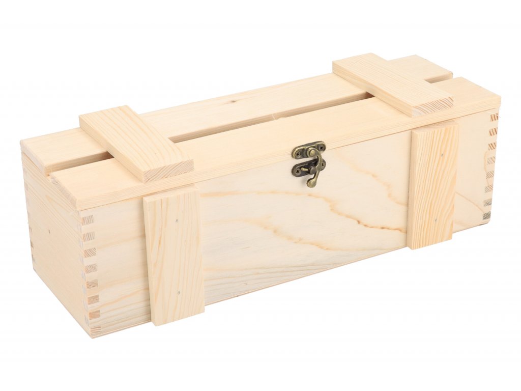 Nádherná darčeková truhla na víno zo smrekového dreva, vhodná pre tých, ktorí chcú fľašu alkoholu darovať štýlovo!