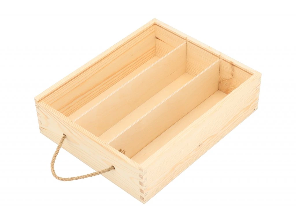 Darčeková truhla na 3 fľaše vína z borovicového dreva sa hodí každému, kto chce obdarovať svojich najbližších štýlovo.