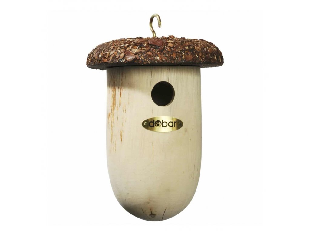 Drevená vtáčia búdka v tvare žaluďa