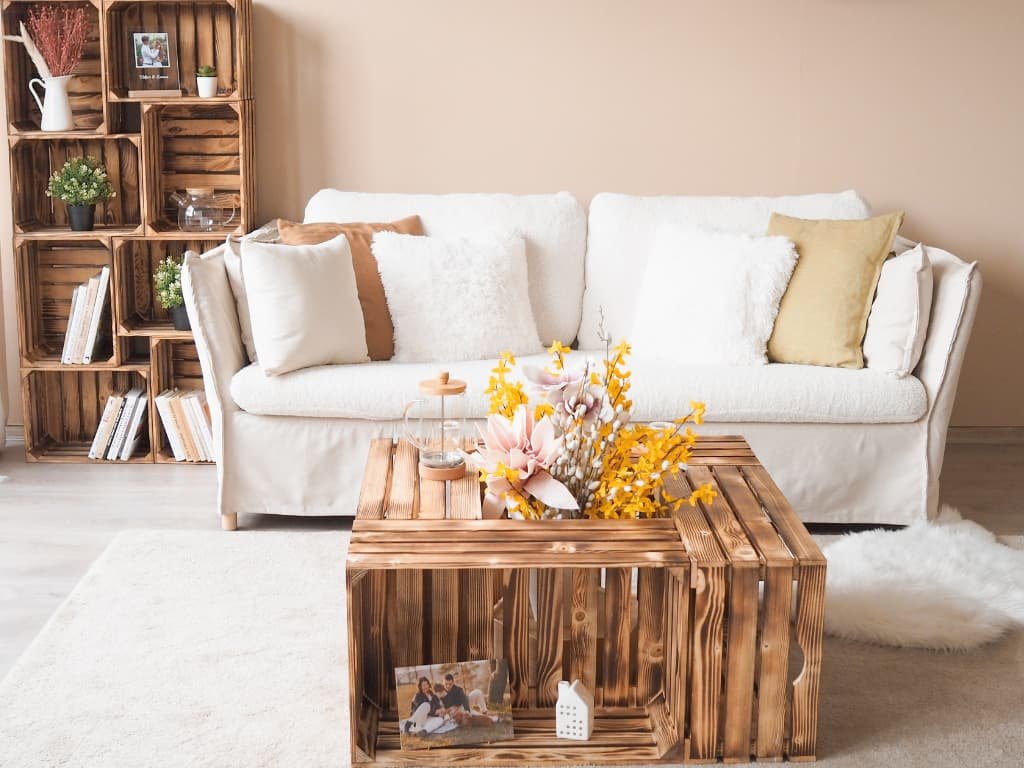 Čerstvý a prírodný, taký je nábytok z drevených debničiek. Napriek tomu, že sa nám prírodná farba dreva páči, opálenie mu zas dodá trošku šmrnc a ozvláštni ho.