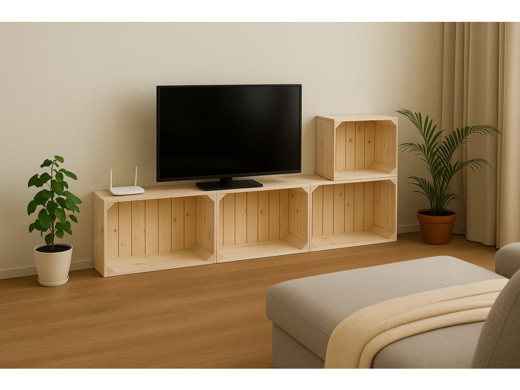Obývacia stena je zložená z debničiek s rozmermi 3 x 60x30x24 cm, 1x 40x30x24 cm.