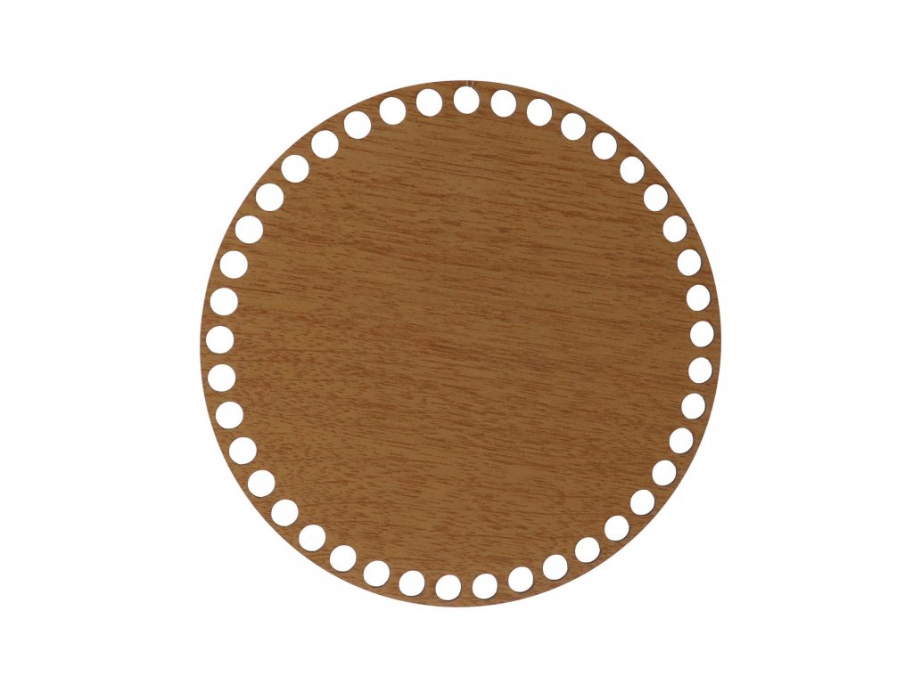 Okrúhle dno na košík s dekórom dreva zlatého duba o sile 3 mm s otvormi s priemerom 9 mm ponúkame v rôznych veľkostiach. Je vhodné na výrobu háčkovaných košíkov zo špagátových a šnúrkových priadzí.