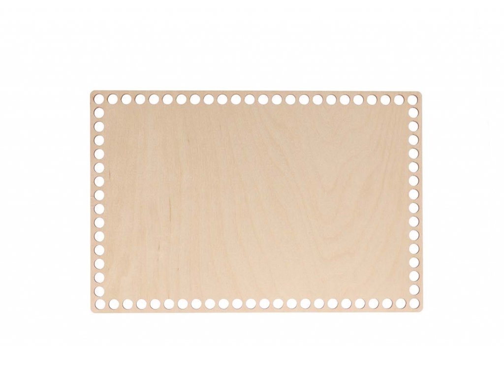 Drevené dno obdĺžnikového tvaru z brezovej preglejky hrúbky 3 mm s otvormi s priemerom 9 mm ponúkame v rôznych veľkostiach. Je vhodné na výrobu háčkovaných košíkov zo špagátových a šnúrkových priadzí.