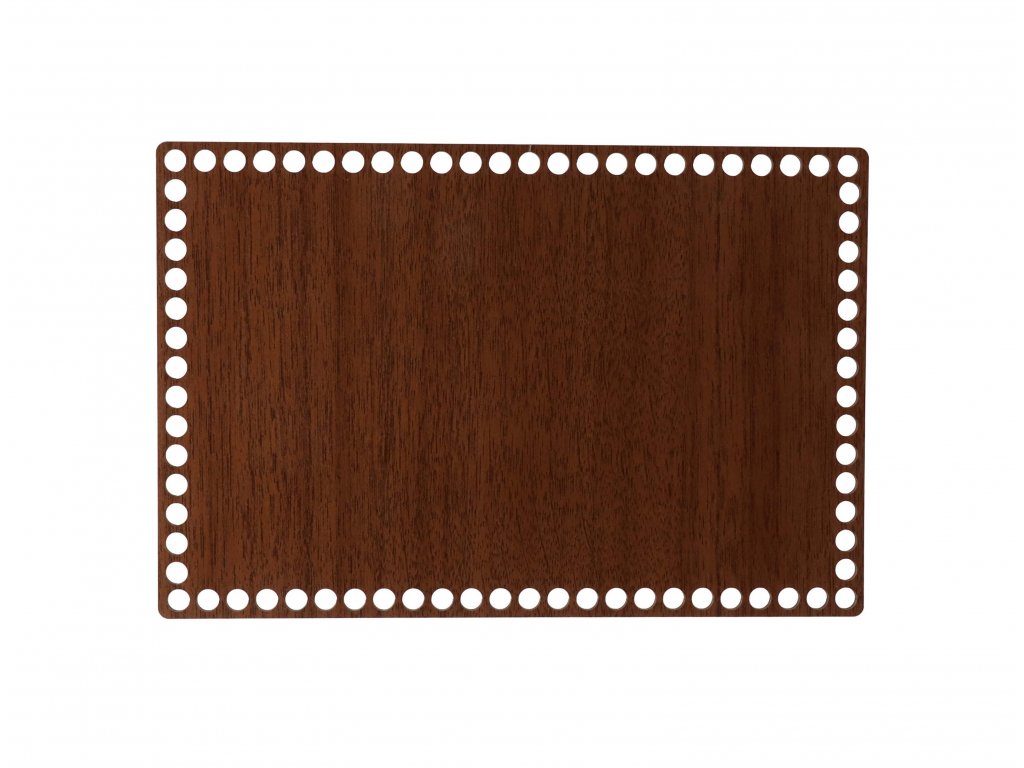 Dno na košík obdĺžnikového tvaru s dekórom tmavého orechového dreva o sile 3 mm s otvormi s priemerom 9 mm ponúkame v rôznych veľkostiach. Je vhodné na výrobu háčkovaných košíkov zo špagátových a šnúrkových priadzí.