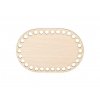 Oválne drevené dno z brezovej preglejky hrúbky 3 mm s otvormi s priemerom 9 mm ponúkame v mnohých variantoch. Je vhodné na výrobu háčkovaných košíkov zo špagátových a šnúrkových priadzí.