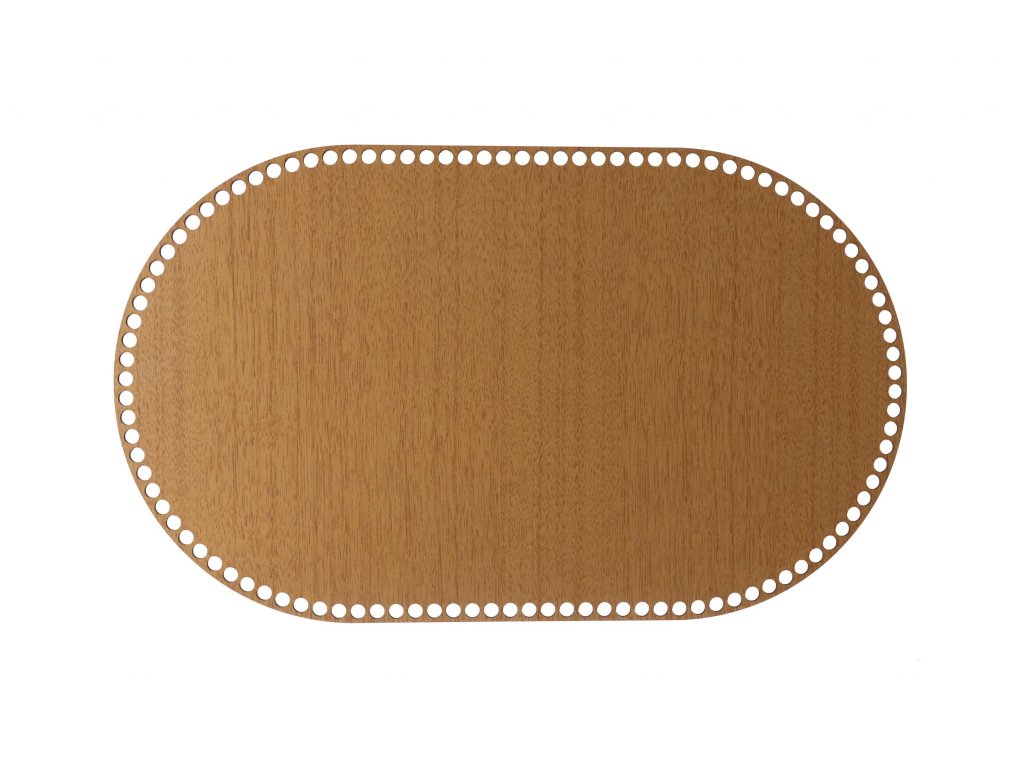 Oválne dno na košík s dekórom dubového dreva o hrúbke 3 mm s otvormi s priemerom 9 mm ponúkame v mnohých variantoch. Je vhodné na výrobu háčkovaných košíkov zo špagátových a šnúrkových priadzí.