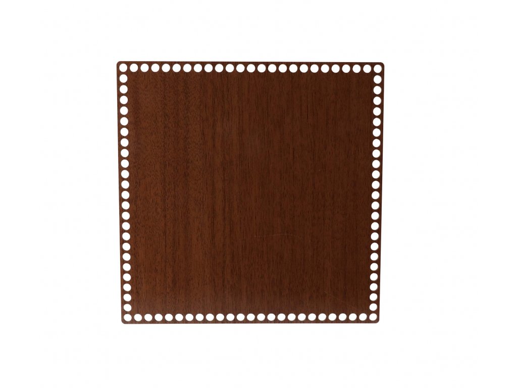 Štvorcové dno na košík s dekórom tmavého orechového dreva o sile 3 mm s otvormi s priemerom 9 mm ponúkame vo viacerých veľkostiach. Je vhodné na výrobu háčkovaných košíkov zo špagátových a šnúrkových priadzí.