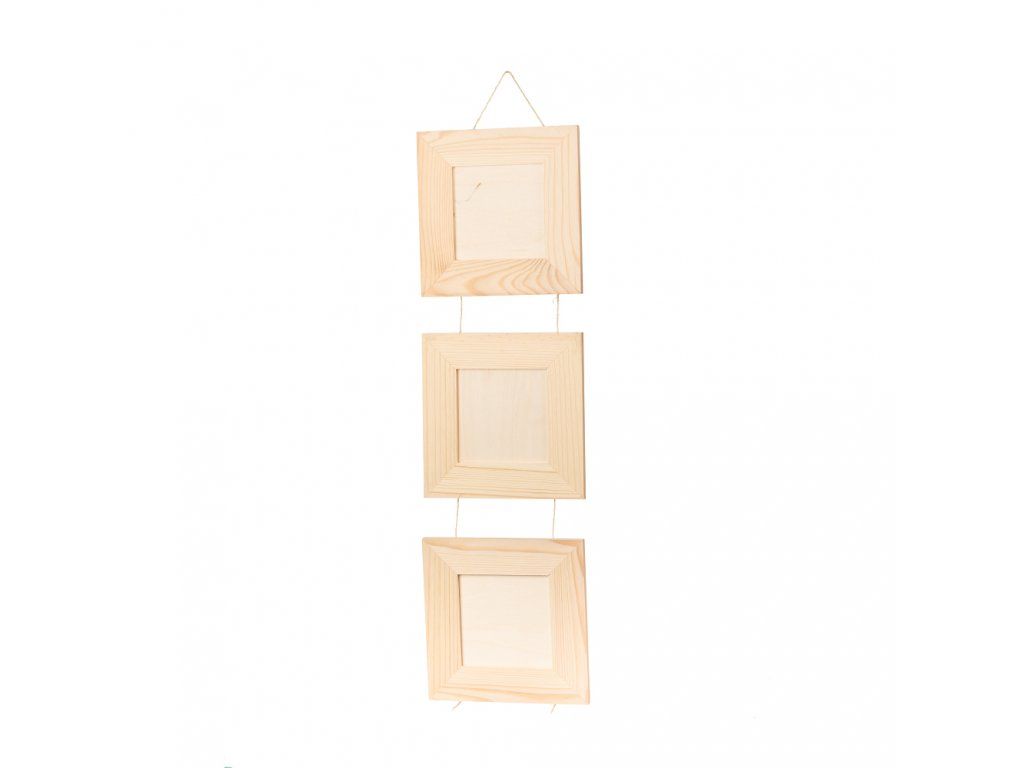 Súprava troch drevených fotorámikov na šnúrke vhodných na zavesenie. Ideálny a decentný drevený doplnok na ktorékoľvek miesto.