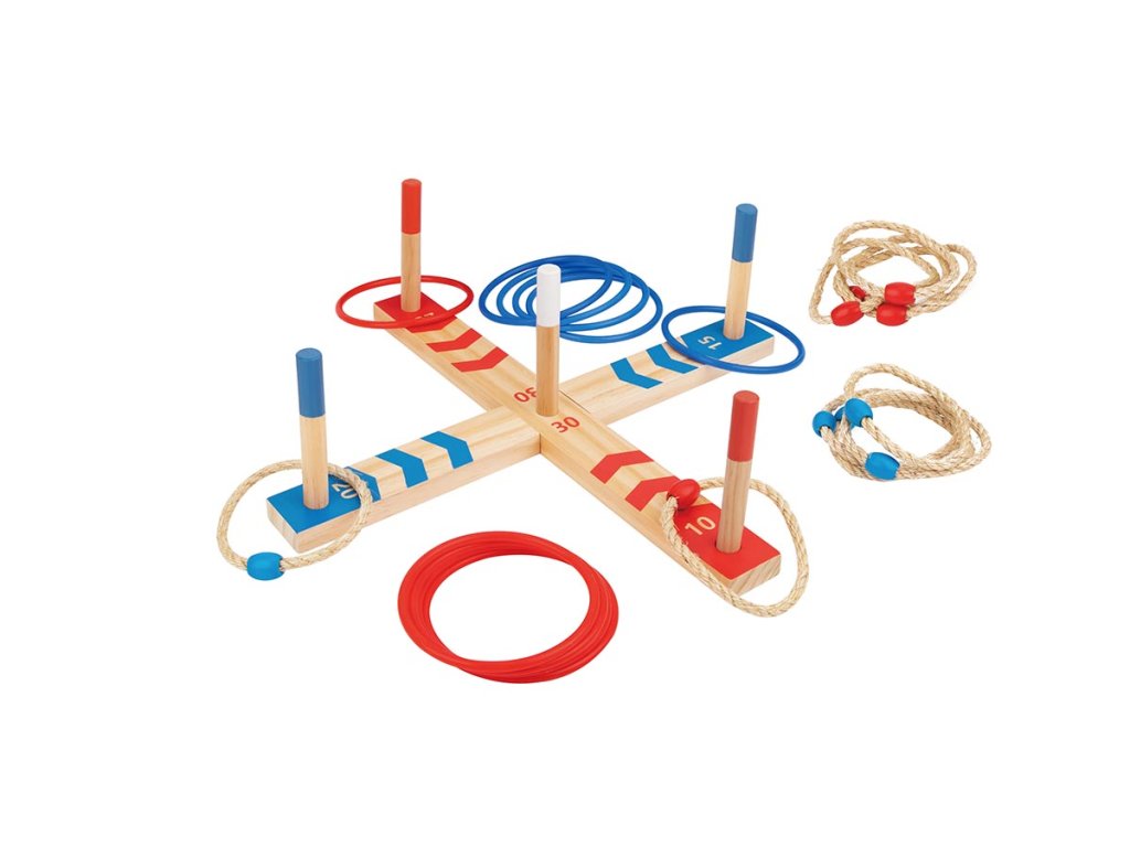 Hádzanie krúžkov je klasická drevená hra, ktorá nikdy neomrzí, prináša deťom radosť z úspechu a zároveň veľa pohybu aj tréningu zručností. Hrať môžete nielen vonku, ale aj doma v detskej izbe.
