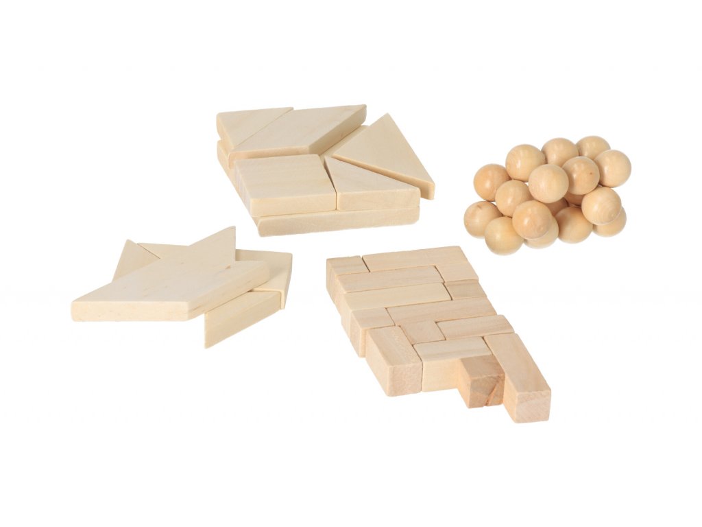 Drevené hlavolamy v sáčkoch - set 4 ks