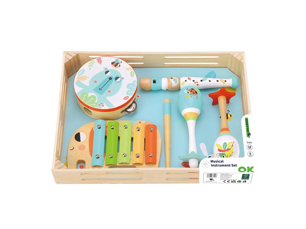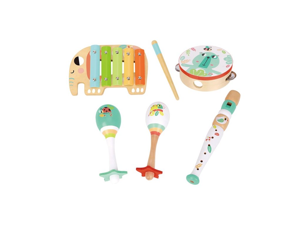 Sada nástrojov obsahuje xylofón, rumba gule, flautu a tamburínu.