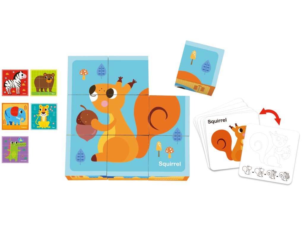 Drevené obrázkové kocky patria medzi najobľúbenejšie hračky už celé generácie. V balení nájdete 9 pevných kociek, z ktorých si deti môžu postupným skladaním vytvoriť obrázky veselých zvieratiek.