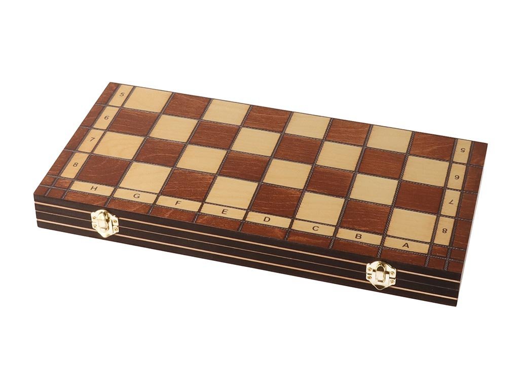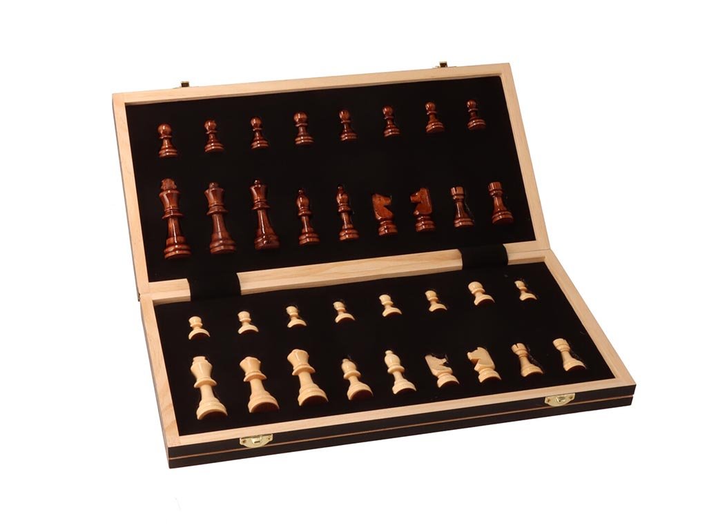 Šachové pole s rozmerom 39 x 39 cm je potlačené pomocou kvalitnej UV tlačiarne, ktorá zaisťuje ostré línie, stále farby a dlhú životnosť bez vyblednutia. Povrch dosky je hladký, príjemný na dotyk a ľahko sa udržiava, čo zaručuje komfortný herný zážitok aj pri dlhších partiách. Drevené figúrky sú ergonomicky tvarované, dobre padnú do ruky a vďaka magnetom pevne držia na políčkach.
