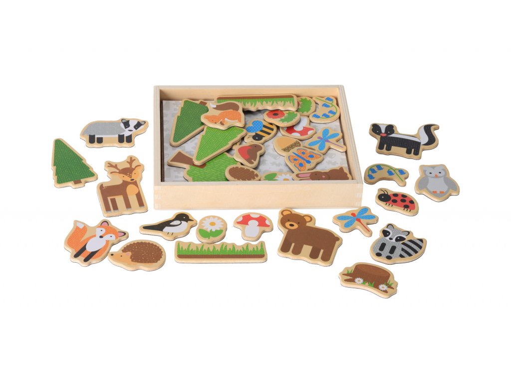 Krásne farebné drevené magnetky s motívom rôznych lesných zvieratiek. Môžete ich použit na magnetickú tabuľu alebo vykúzliť rozprávkový les na vašej chladničke.