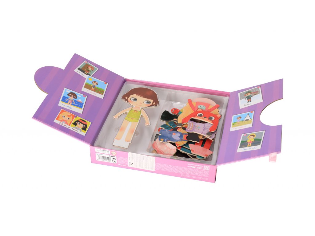 Drevená magnetická bábika je vysoká 22 cm a súčasťou balenia je 37 kúskov oblečenia a doplnkov.