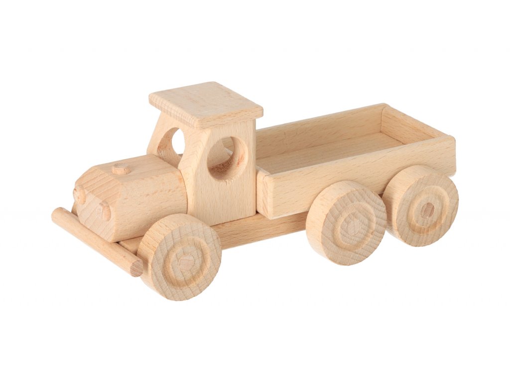 Drevené nákladné auto s korbou, ktoré nepochybne poteší každého malého chlapca. Nákladiak má vo vlečke úložný priestor na prevoz všetkého možného aj nemožného.