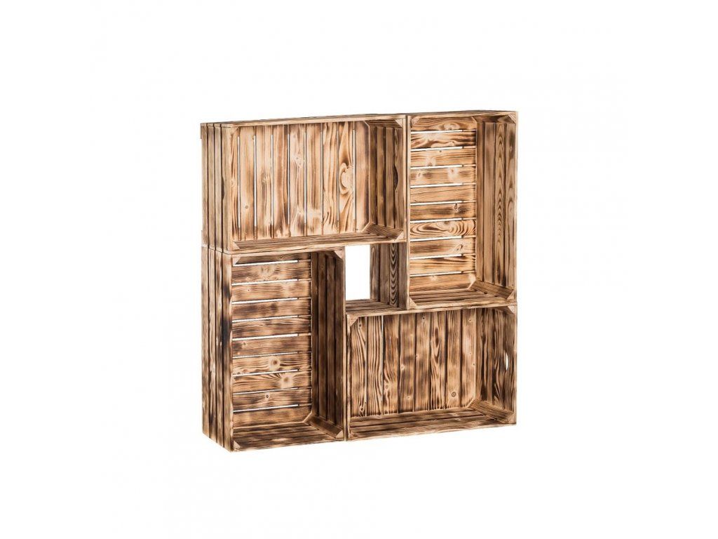 Drevené opálené debničky knižnica 100x100x24 cm