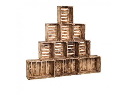 Drevené opálené debničky knižnica 120 x 120 x 24 cm