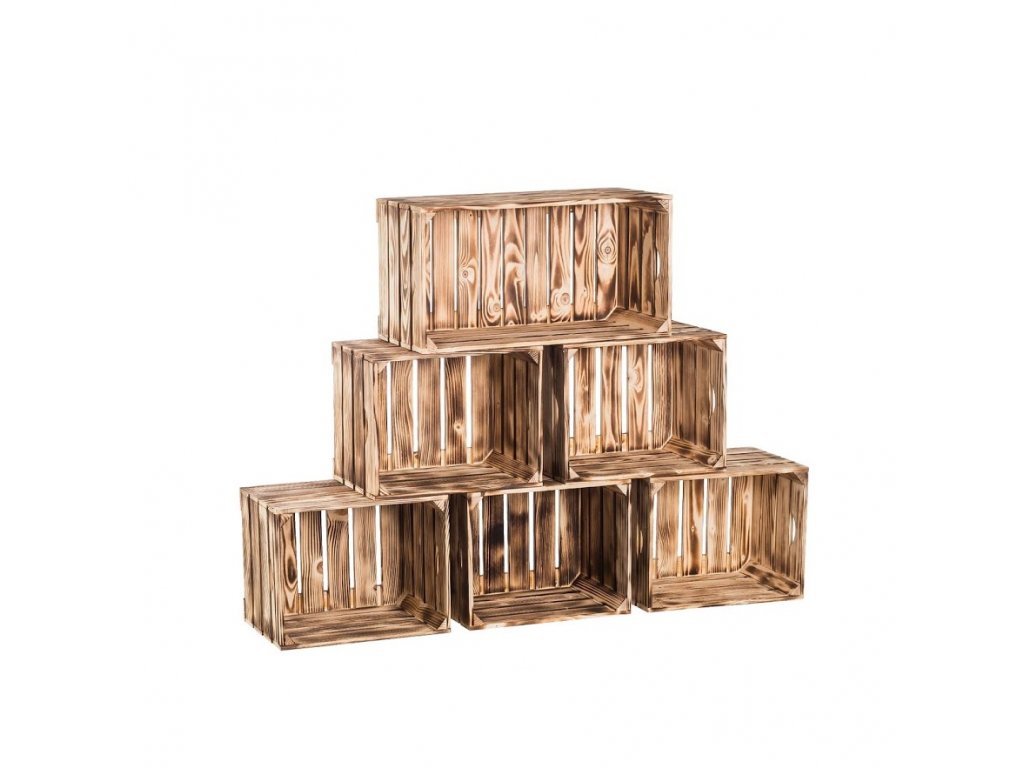 Čerstvý a prírodný, taký je nábytok z drevených debničiek. Napriek tomu, že sa nám prírodná farba dreva páči, opálenie mu zas dodá trošku šmrnc a ozvláštni ho. Táto stena z drevených debničiek má celkové rozmery 140x90x24 cm.