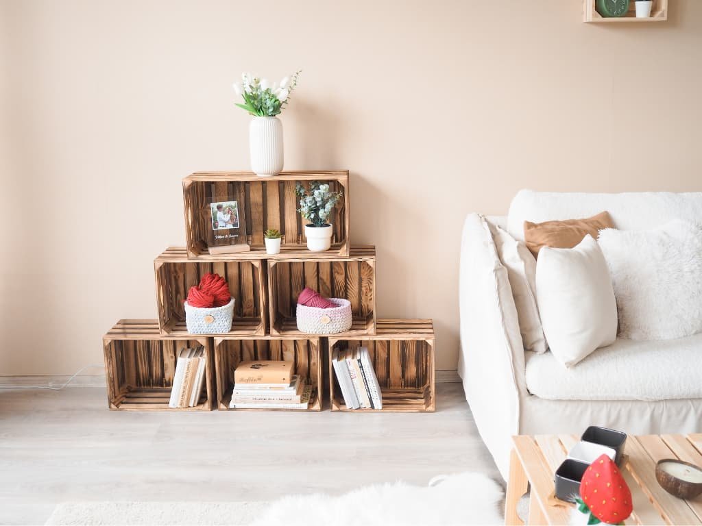 Čerstvý a prírodný, taký je nábytok z drevených debničiek. Napriek tomu, že sa nám prírodná farba dreva páči, opálenie mu zas dodá trošku šmrnc a ozvláštni ho.