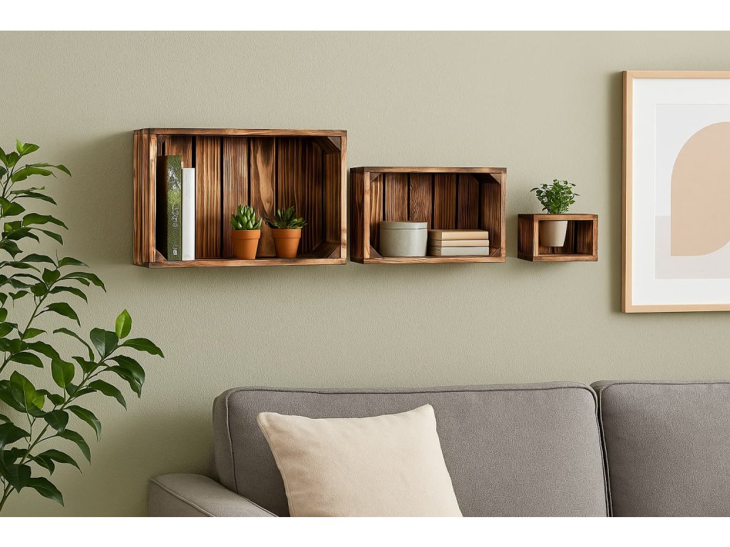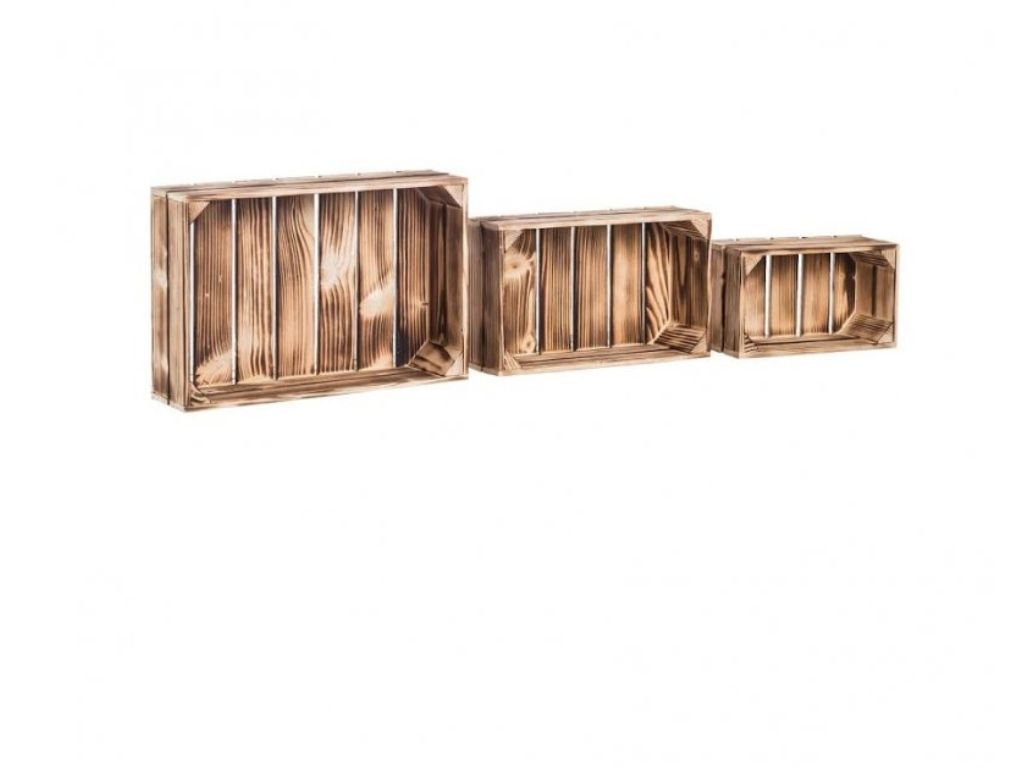 Poličky sú tvorené z debničiek s rozmermi (d x š x v):