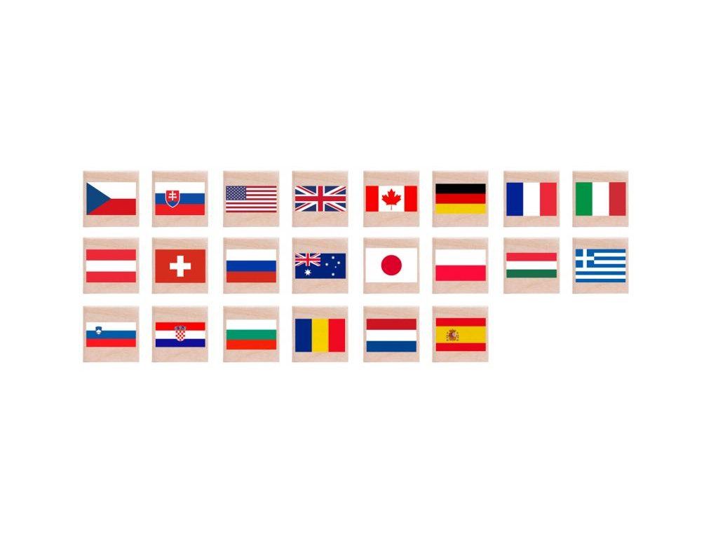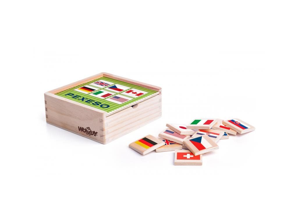 Drevené pexeso ponúka 22 štátnych vlajok, vrátane Českej republiky a Slovenska.